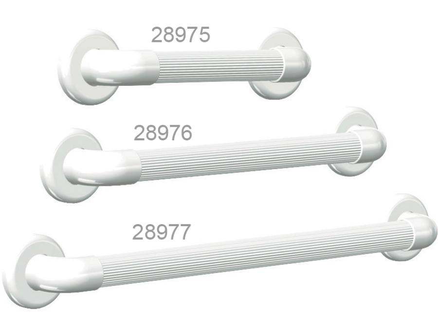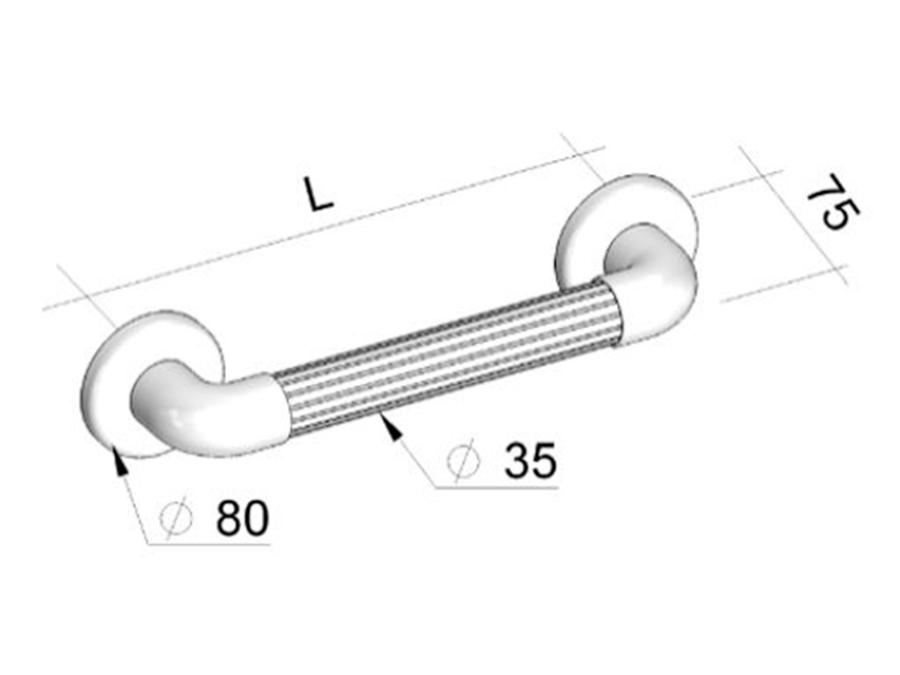 Maniglia striata in PVC medicale, completa con placche di fissaggio in ABS e coperture a vite.